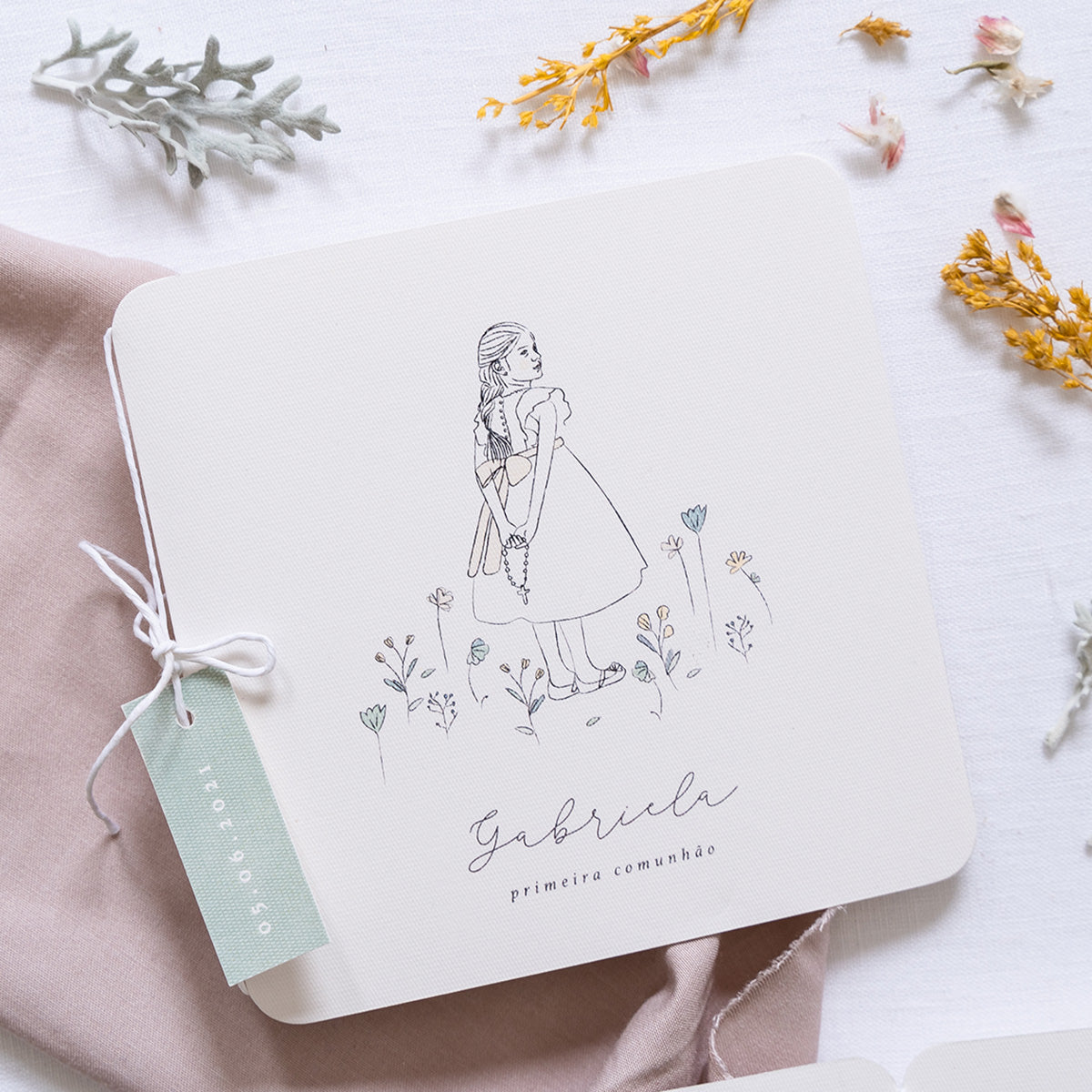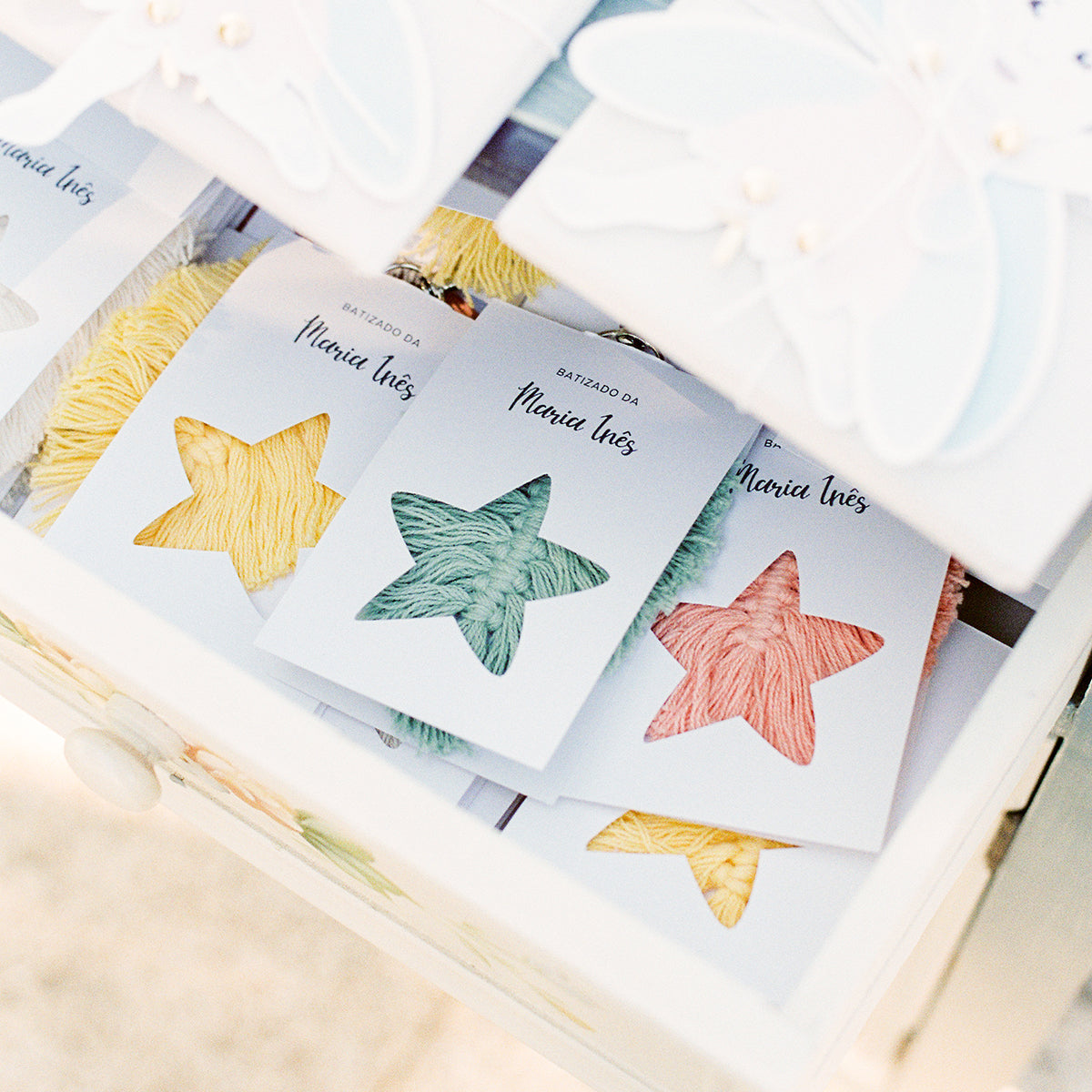 Convites personalizados para batizado e comunhão.