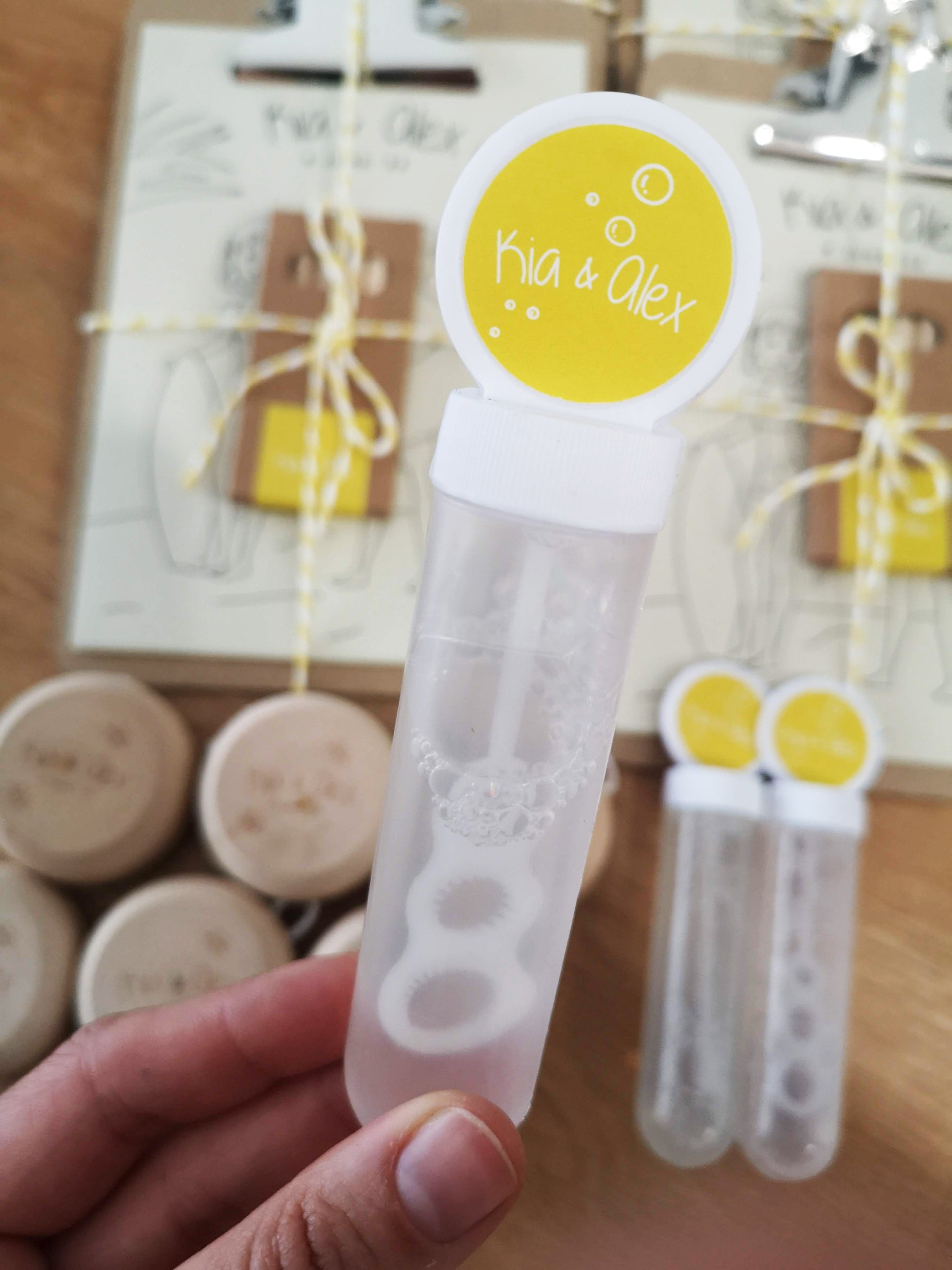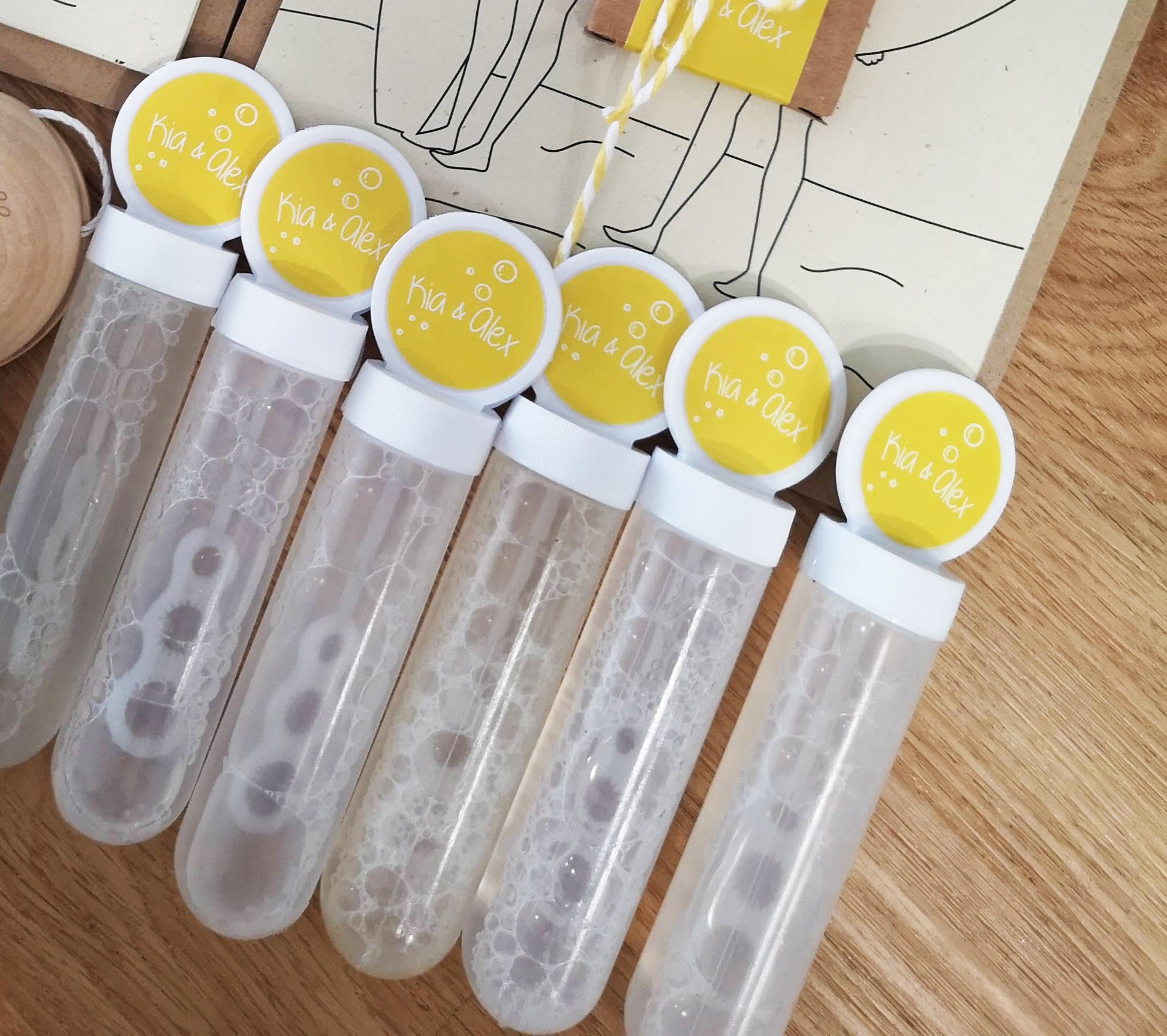 10 tubos bolas de sabão translúcido, com tampinha especial para etiqueta personalizável. Ideal para lembranças de criança.
